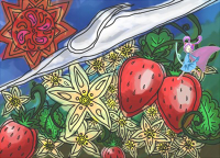夢だったのかと思って、二人は家路につこうと立ち上がると、コロコロと何かが転がったものを見ると、動物の毛で編まれた紐と沢山の木の実だった。二人は両手いっぱいのお土産を見て、ふふふと笑いあった。